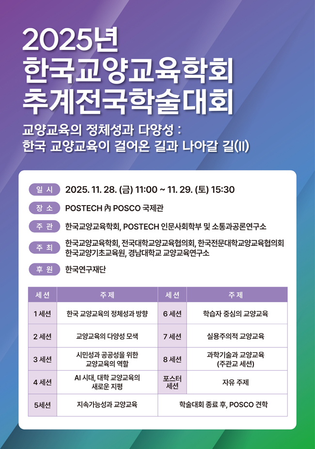 | 다음글 | 2025 정기 심포지엄 <한국 교양교육이 걸어온 길과 나아갈 길>... |